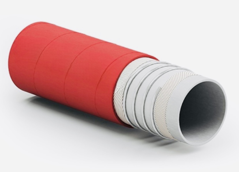 Suction and delivery hose designed for the safe transfer of milk, dairy by-products, wine, and non-fat food products, manufactured in compliance with GMP standards (Regulation (EC) No. 2023/2006).