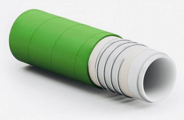Crush-resistant versatile multi-purpose food grade hose with steel wire reinforcement. Designed for demanding applications where hose crushing is a concern in transport operations.
